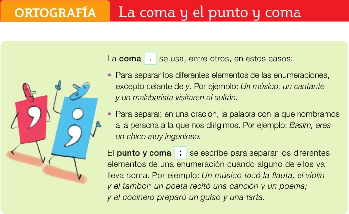 Hoy vamos a ver cuándo se utiliza la "coma" y el "punto y coma". Para aprenderlo, debéis leer el cuadro de teoría de la página 138.