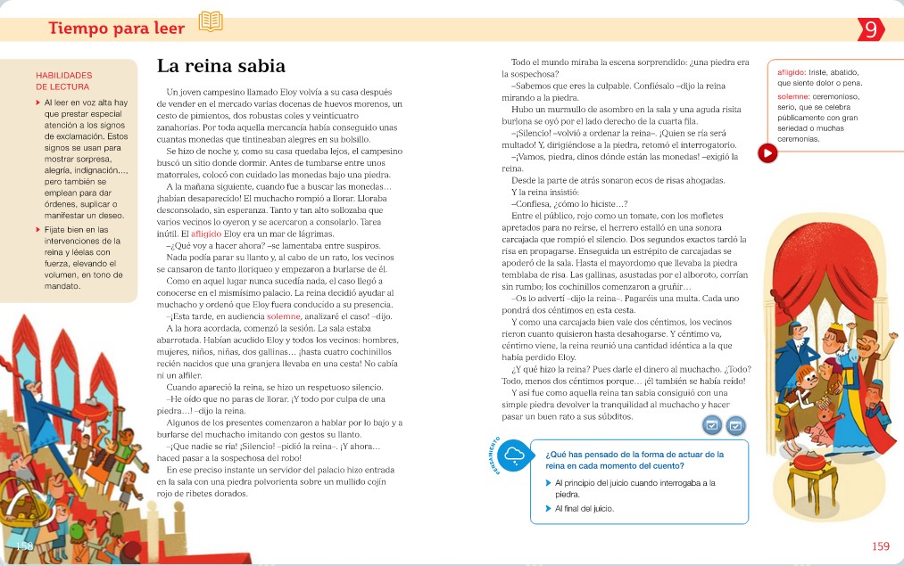 Para esta semana, os propongo hacer la lectura de las páginas 158 y 159 titulada "La reina sabia".