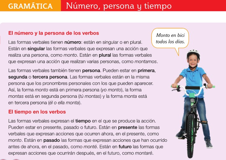 En cuanto a Lengua, hoy vamos a ver cómo es el número de un verbo, es decir, singular o plural; cómo es la persona del verbo, si es primera, segunda o tercera persona; y, por último, el tiempo de los verbos, que, como ya sabéis, puede ser pasado, presente o futuro.