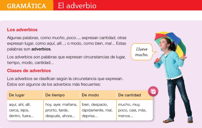 En el cuadro de la izquierda, que es el de la página 178, podéis ver qué son los adverbios y las clases de adverbios más frecuentes. ¡Leedlo con atención!