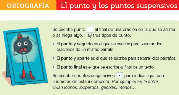 Además, al final del cuadro nos explica qué son los puntos suspensivos (...) y para qué sirven.