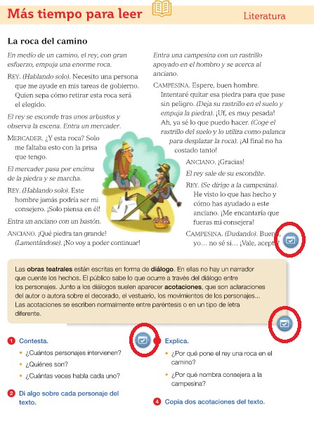 En cuanto a Lengua, comenzamos nuestra última semana de clase. ¿Qué debéis hacer esta última semana? Muy fácil. Tenéis que ir a la página 184 de vuestro libro y leer la lectura "La roca del camino", además del cuadro de teoría sobre las obras teatrales.