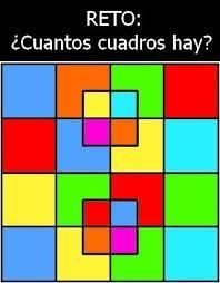 Solución: 40 cuadrados (1 de 4x4, 4 de 3x3, 9 de 2x2, 18 de 1x1 y los 8 pequeñitos).