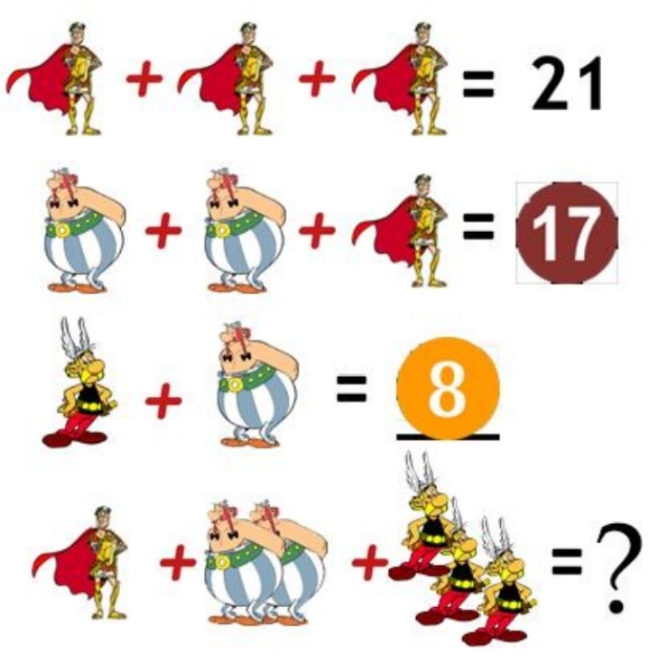Solución: 26. (romano = 7, Astérix = 3, Obélix = 5)¡Enhorabuena a los que lo acertasteis!