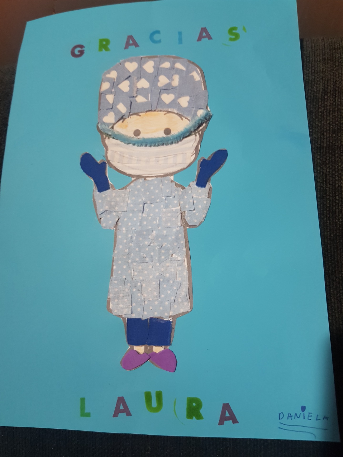 Nuestra alumna Daniela ,nos muestra la manualidad propuesta en plástica , y además con un mensaje especial, para la mamá de Andrés. Todo un detallazo.