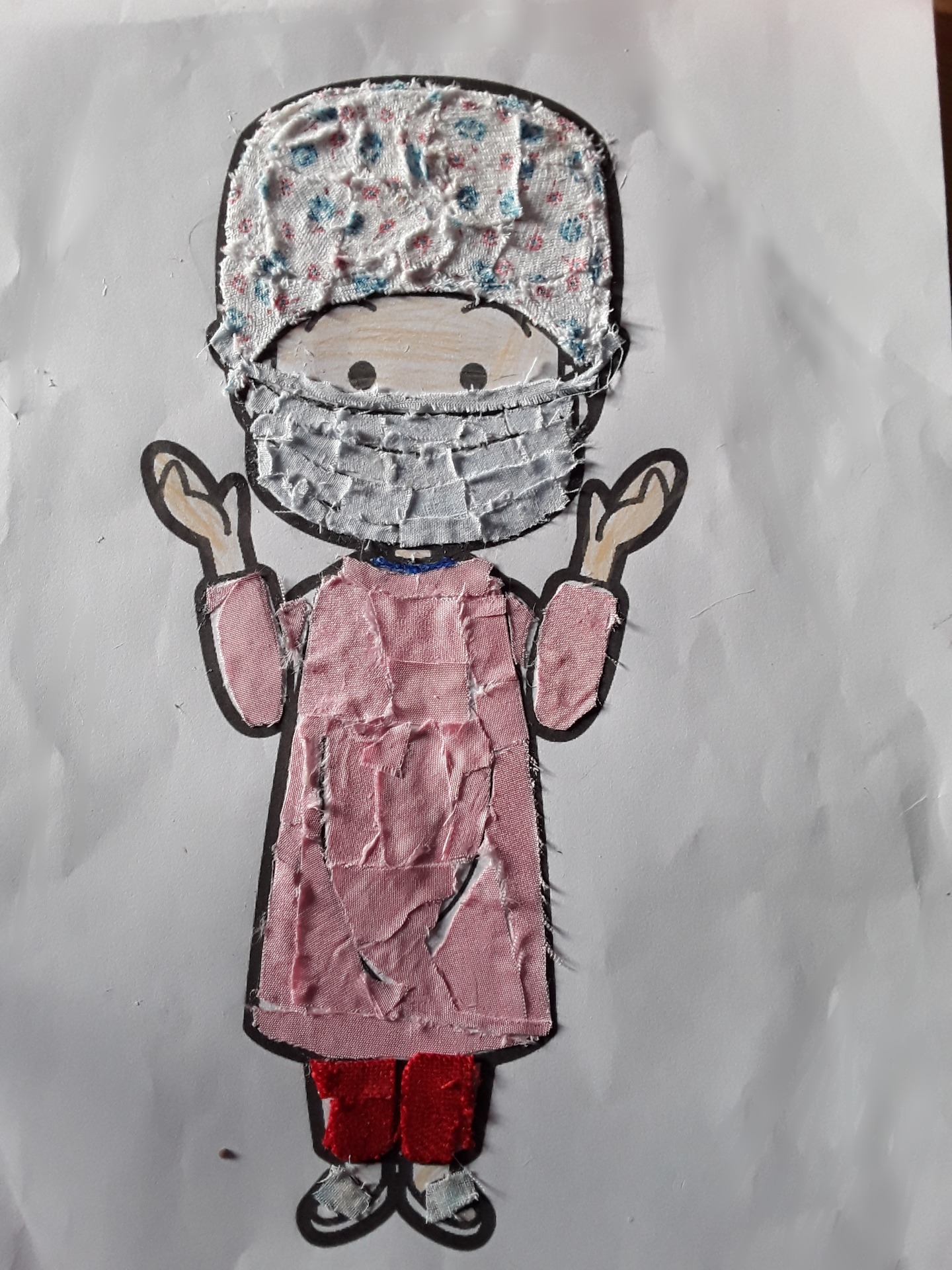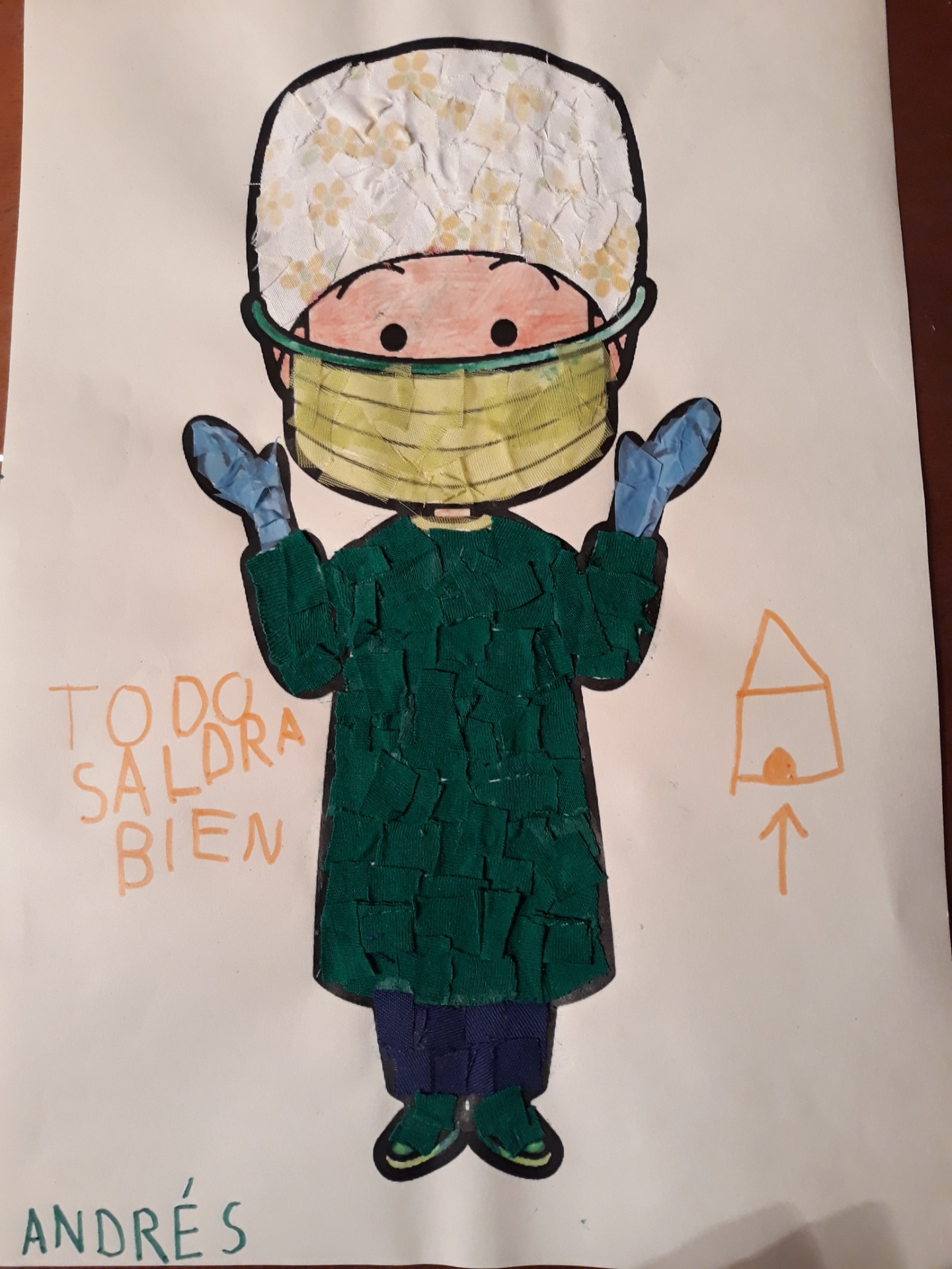 Nuestro guapetón Marco , nos envía su manualidad del sanitario . Un conjunto maravilloso , la bata con el gorrito . Fantástico!!!!