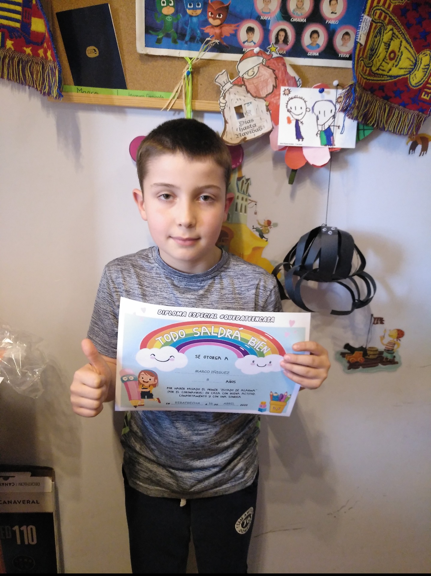 Nueva foto de nuestro querido Dani T , y su superdiploma de esta cuarentena . Todo saldrá bien y nos veremos .