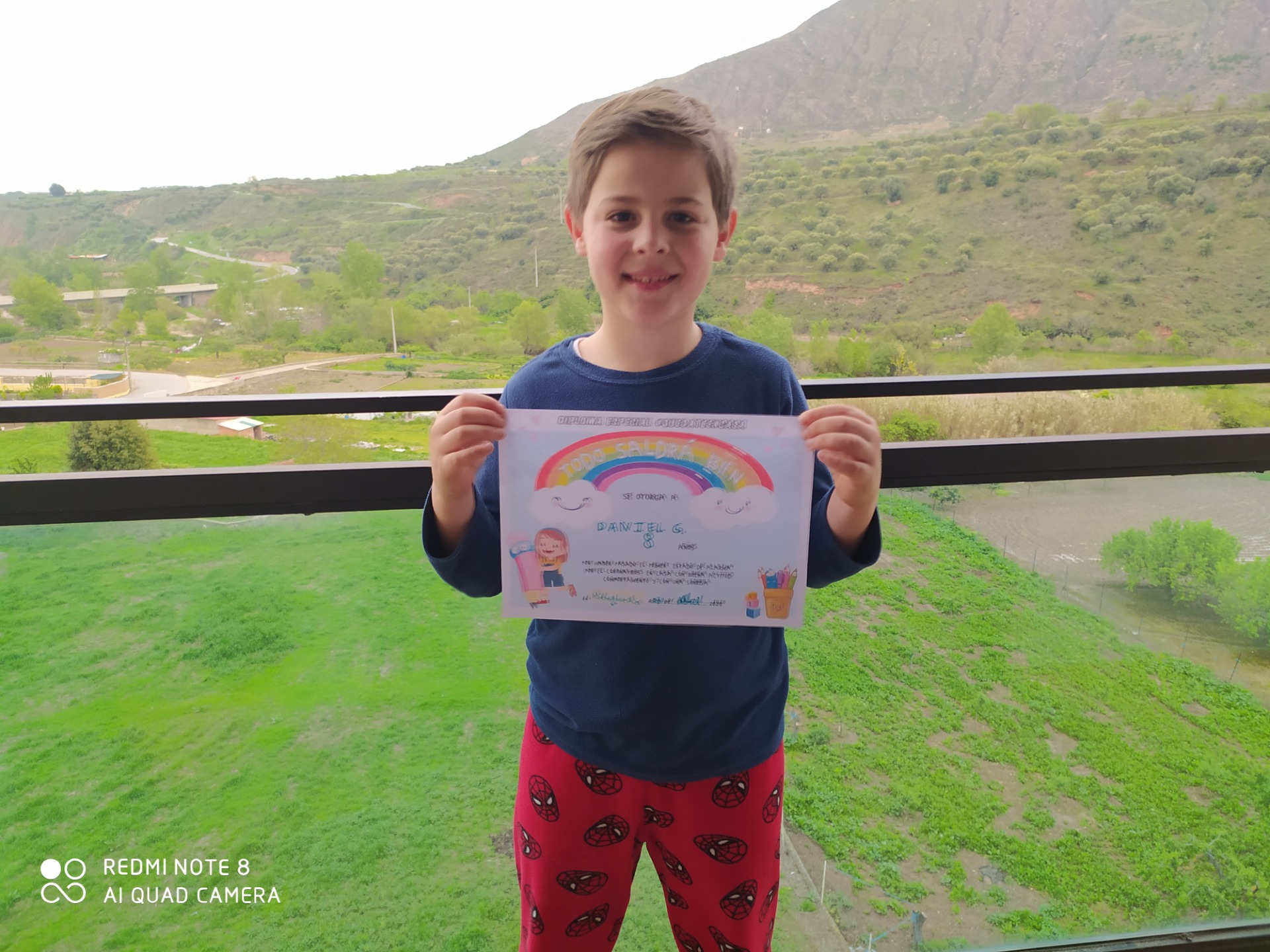 Bueno ,buenoo, aquí tenemos a Daniel Galilea, precioso con su pyjama de SPIDERMAN y como no , su merecido diploma .